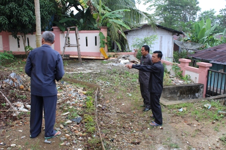 ketua pembangunan musholla meninjau lokasi tempat musholla pengadilan Agama Bangko akan di bangun.